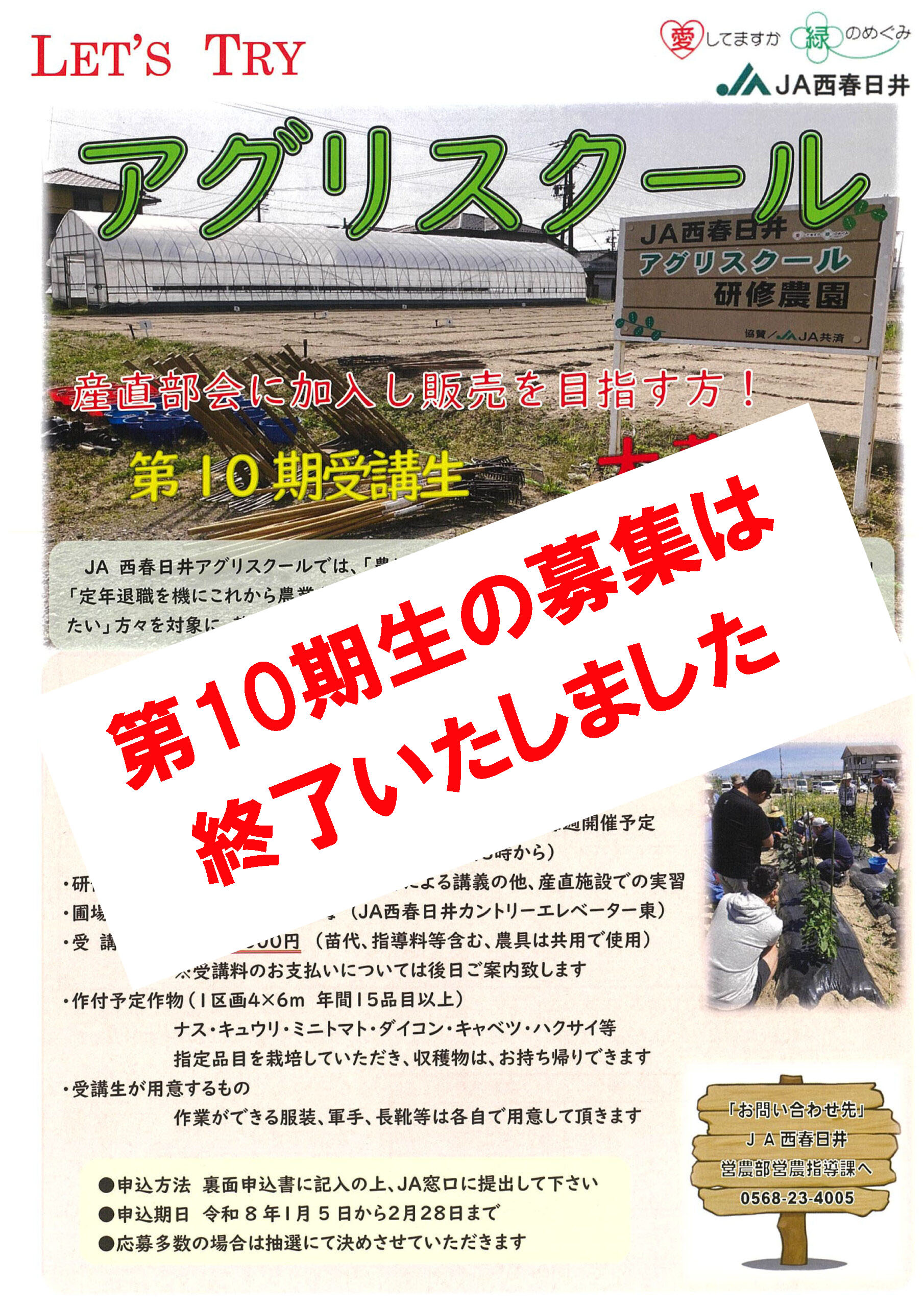 | 【2025年2月21日】アグリスクール第9期生の募集は終了致しました |