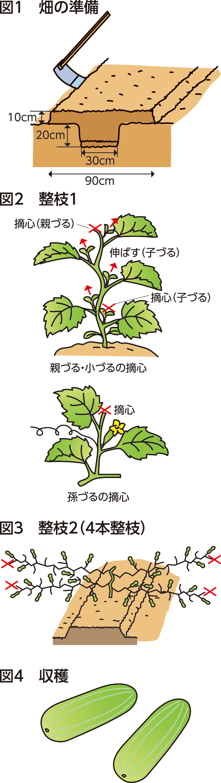 [収穫] 若取りは200~300g(開花後20~25日)で収穫します。かす漬けなどの加工用は1kg程度(開花後40日程度)で収穫します(図4)。